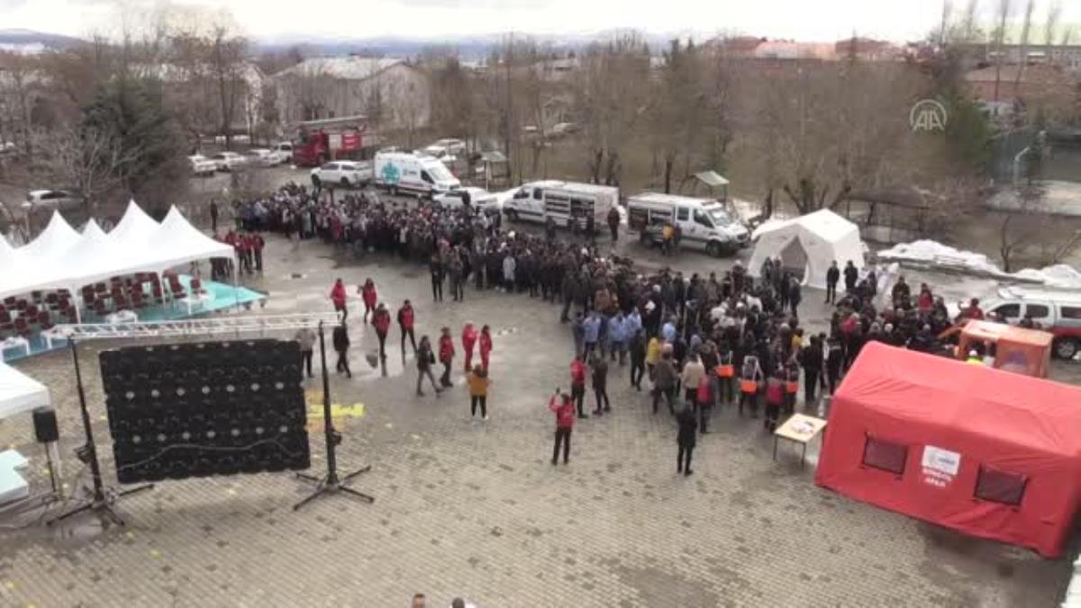 Deprem Anı ve Tahliye Tatbikatı nın gerçekleştirildiği okul bahçesi Okuldaki öğrencilerin dışarıya tahliye edilmesi Vali Yardımcısı Fatih Kaya nın konuşması Vali Yardımcısı Fatih Kaya nın stantları ge...